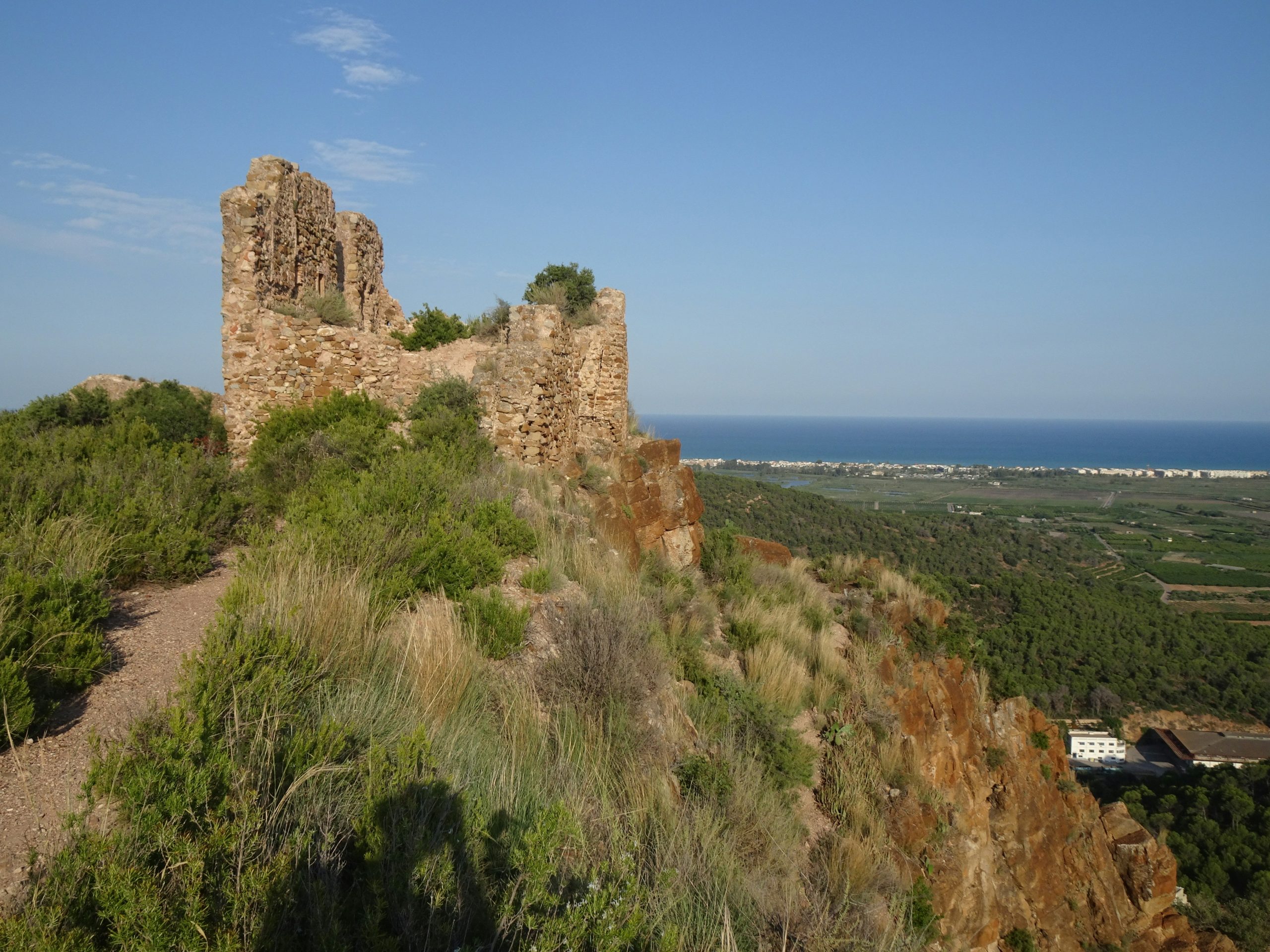 Escape Valencia on a scenic half-day hike to Almenara Castle, where pine-scented trails lead to panoramic views stretching from the Sierra de Espadán to the wetlands of Marjal d’Almenara and the Mediterranean coast.
